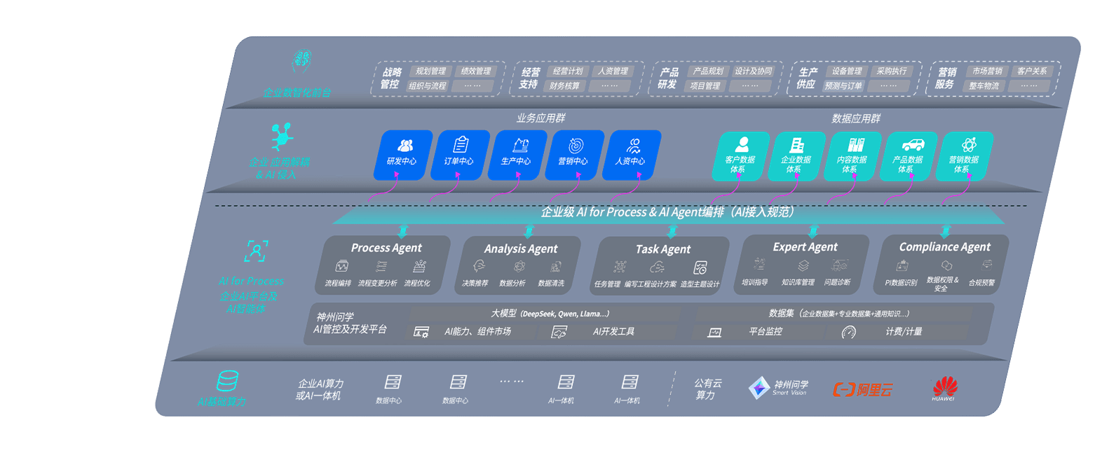 摩登7问学智车解决方案是一套基于AI技术的汽车行业智能化系统,,覆盖从底层算力到顶层AI应用的全栈方案。。。。方案由算力层、、、、模型层和应用层组成:算力层,,方案支持多种一体机配置,,具备云端灵活部署、、、多云适配以及动态优化计算资源的能力;模型层,,,摩登7问学平台版提供了企业级AI应用一站式构建与管理平台,,支持基于后训练强化技术的汽车企业专属模型的训练、、、评测和运营;应用层,,摩登7问学DeepSeek版提供包括超级员工、、智能招采、、、智能营销、、智能客服、、AI for BI等一系列解决方案,,可助力汽车行业实现数字化转型,,,让管理更智能、、响应更敏捷。。。。